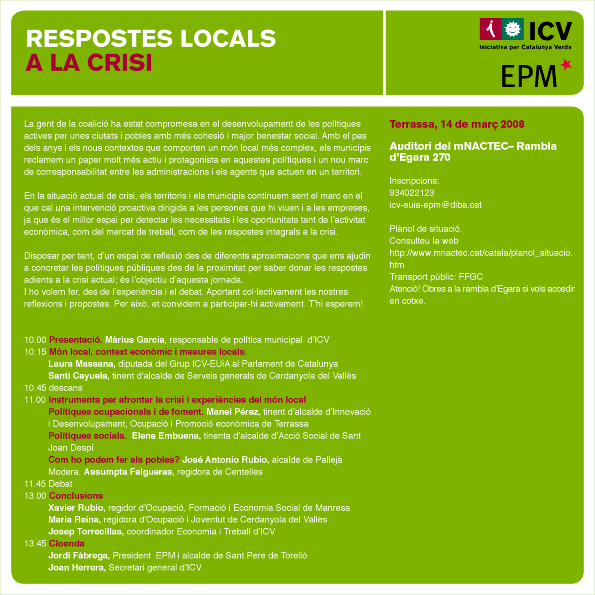 JORNADA SOBRE “RESPOSTES LOCALS A LA CRISI” ORGANITZADES PER ICV i EPM
